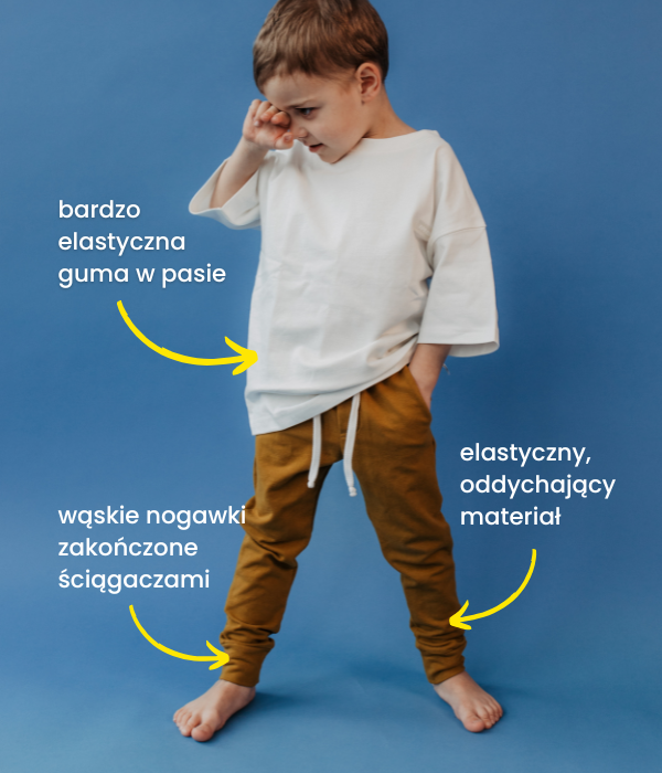Mój synek jest bardzo szczupły i wysokiego wzrostu – do tej pory żadne spodnie nie były dobre. Te joggery mają wąskie nogawki i bardzo elastyczną gumkę – wreszcie nic…